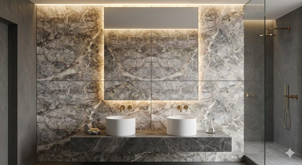 Alaska Grey marble features soft grey tones with subtle natural veining, creating a calm and elegant look. It is ideal for modern interiors, flooring, and sophisticated wall applications. Enhanced with SAP (Stone Augmentation Process) for improved durability and long-lasting finish. Available Thickness: 18mm, 20mm