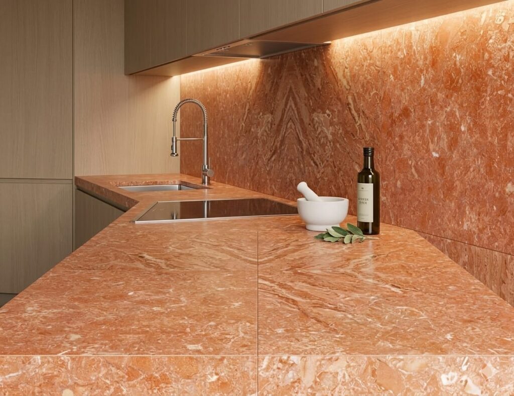 Bronze marble showcases deep brown and metallic undertones, creating a bold and sophisticated look. It is perfect for contemporary interiors and statement applications. Enhanced with SAP (Stone Augmentation Process) for superior strength and finish. Available Thickness: 18mm, 20mm