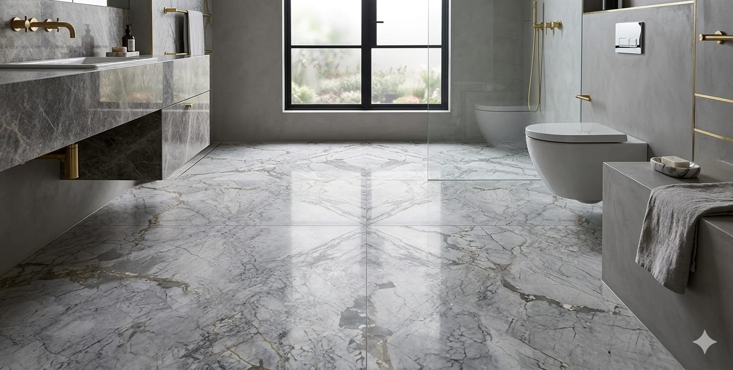 Grey Flurry marble showcases a mix of grey shades with scattered patterns, giving a contemporary and stylish appearance. Enhanced with SAP (Stone Augmentation Process) for superior strength. Available Thickness: 18mm, 20mm