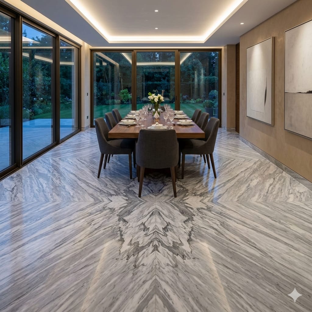 Grey Forest marble features layered grey tones resembling natural forest textures, ideal for bold and unique interiors. Enhanced with SAP (Stone Augmentation Process) for enhanced durability. Available Thickness: 18mm, 20mm