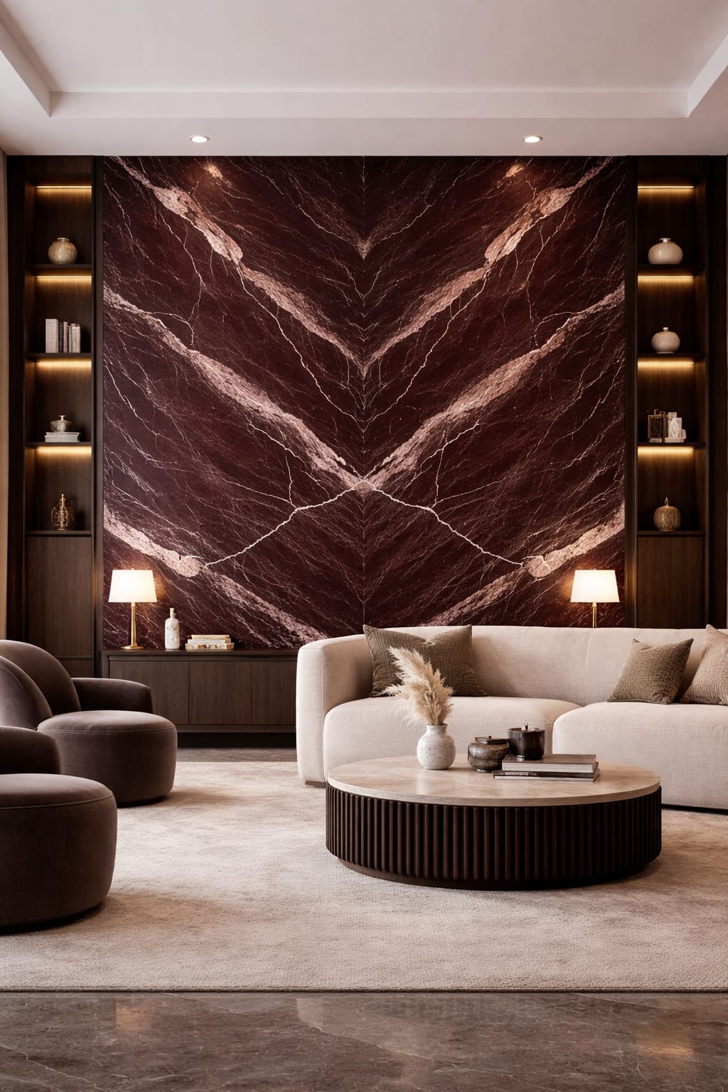 Red Levante marble showcases bold red shades with contrasting veins, making it perfect for statement interiors and high-end applications. Enhanced with SAP (Stone Augmentation Process) for superior durability. Available Thickness: 18mm, 20mm